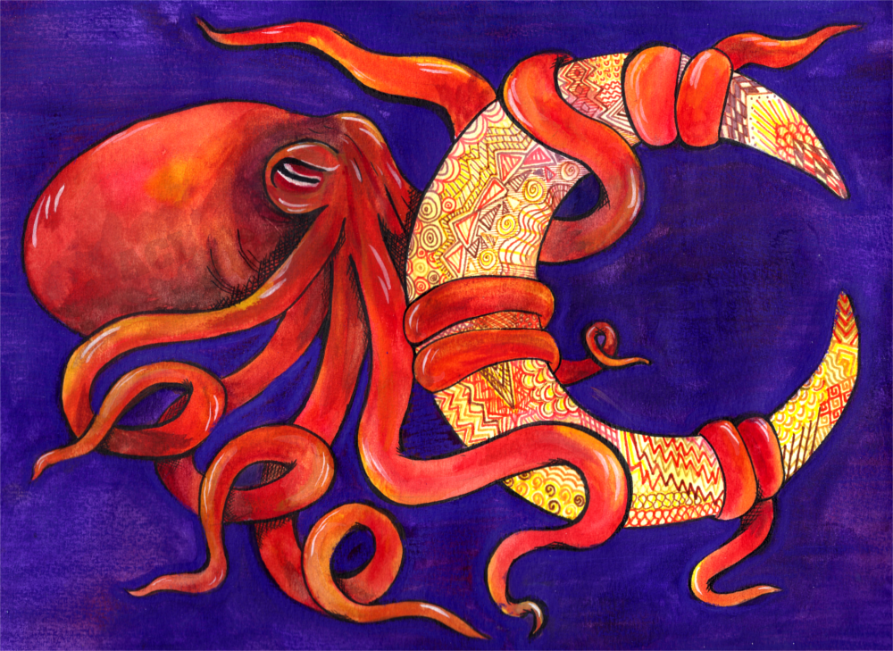 “Octopus Moon” – 2019 – Watercolor and Ink on Paper