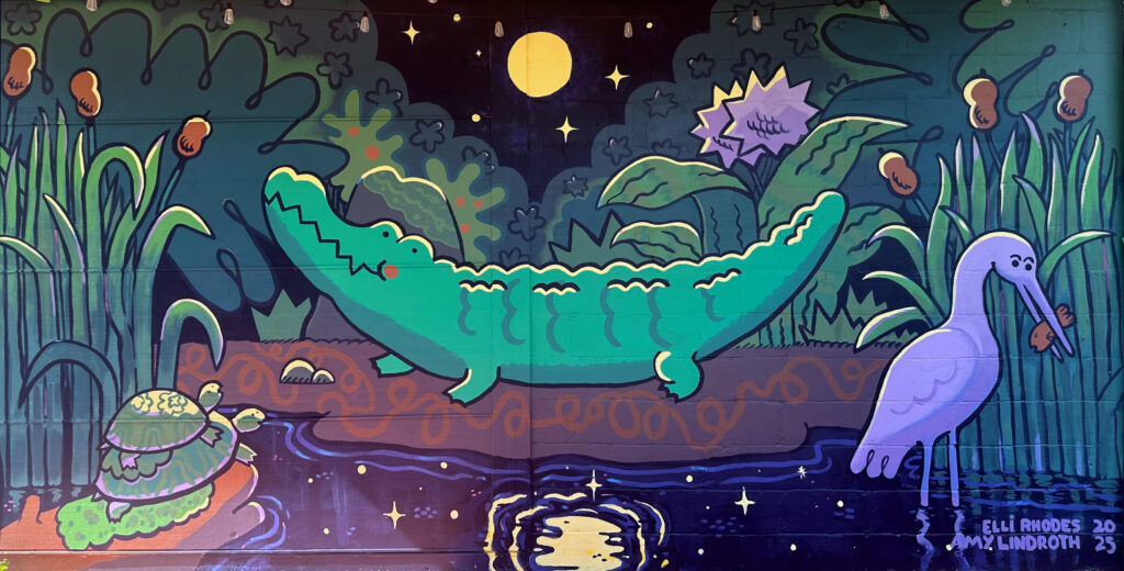 Mural at the Sequential Artists Workshop and GFAA – Designed by Elli Rhodes – Painted by Elli Rhodes and Amy Lindroth – 2025